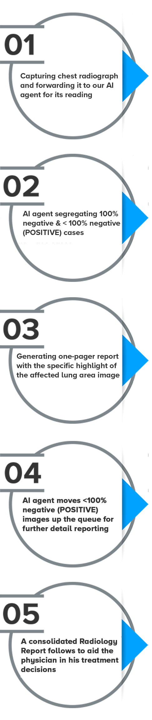 The lack of qualified physicians needed to interpret every chest x-ray in a timely manner inevitably results in reporting delay. Here’s where RAD365 leverages HaiLTH’s capabilities to automate the image interpretation process.